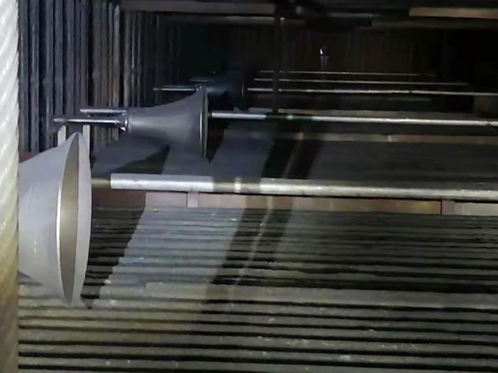 4.聲波吹灰器的護(hù)筒與鍋爐側(cè)壁焊接固定后,再把三段聲波吹灰器擴(kuò)聲筒按先大后小的順序與聲波清灰器的護(hù)筒螺栓連接。